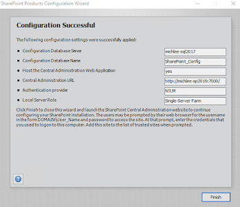 Por último, vuelva a ejecutar el Asistente de configuración de SharePoint para crear correctamente una nueva granja.